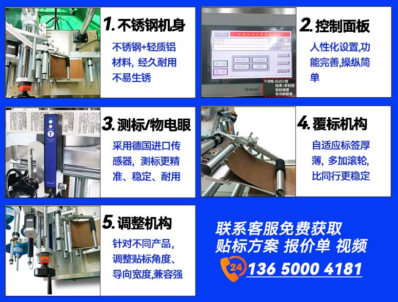 PLC控制,自動化生產(chǎn) 彩色觸摸屏,智能觸屏 穩(wěn)定性高,光電追蹤 操作簡易,貼標(biāo)精準(zhǔn)
