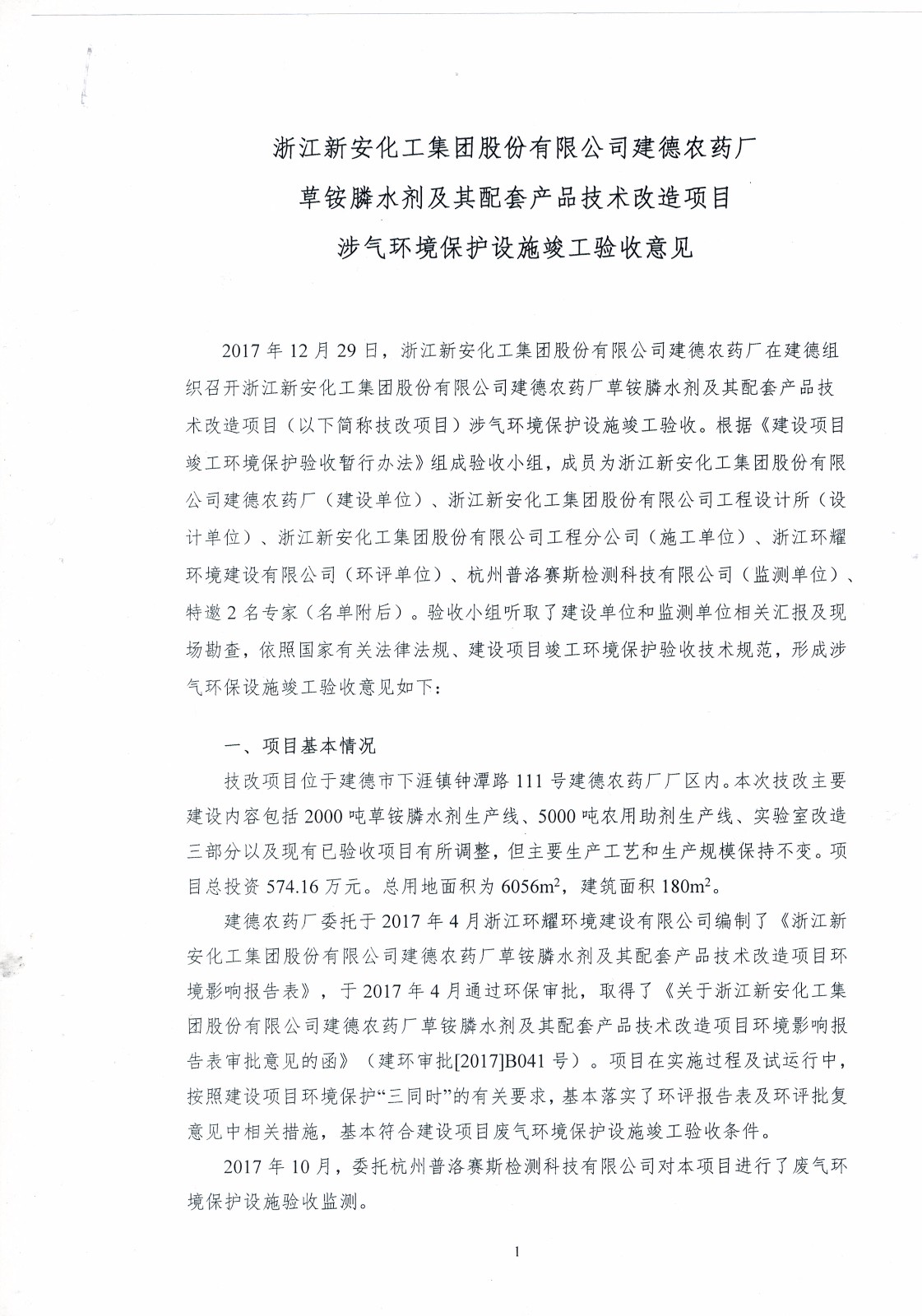新安化工集團(tuán)股份有限公司建德農(nóng)藥廠草銨膦水劑及其配套產(chǎn)品技改項(xiàng)目進(jìn)入驗(yàn)收公示